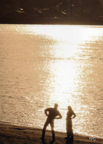 陽が傾きかけた午後浜辺を散策していたらラジオ体操をしている若いカップルに出会った作者は光の帯の中にその二人をシルエットで収めました。その動きは前屈から手を腰に当てての運動、幼い頃からの体で覚えた動きと音の記憶はよみがえってきます。青春映画のワンシーンを切り取ったようなこれから未来に向かう素敵な物語を感じる作品です。 |